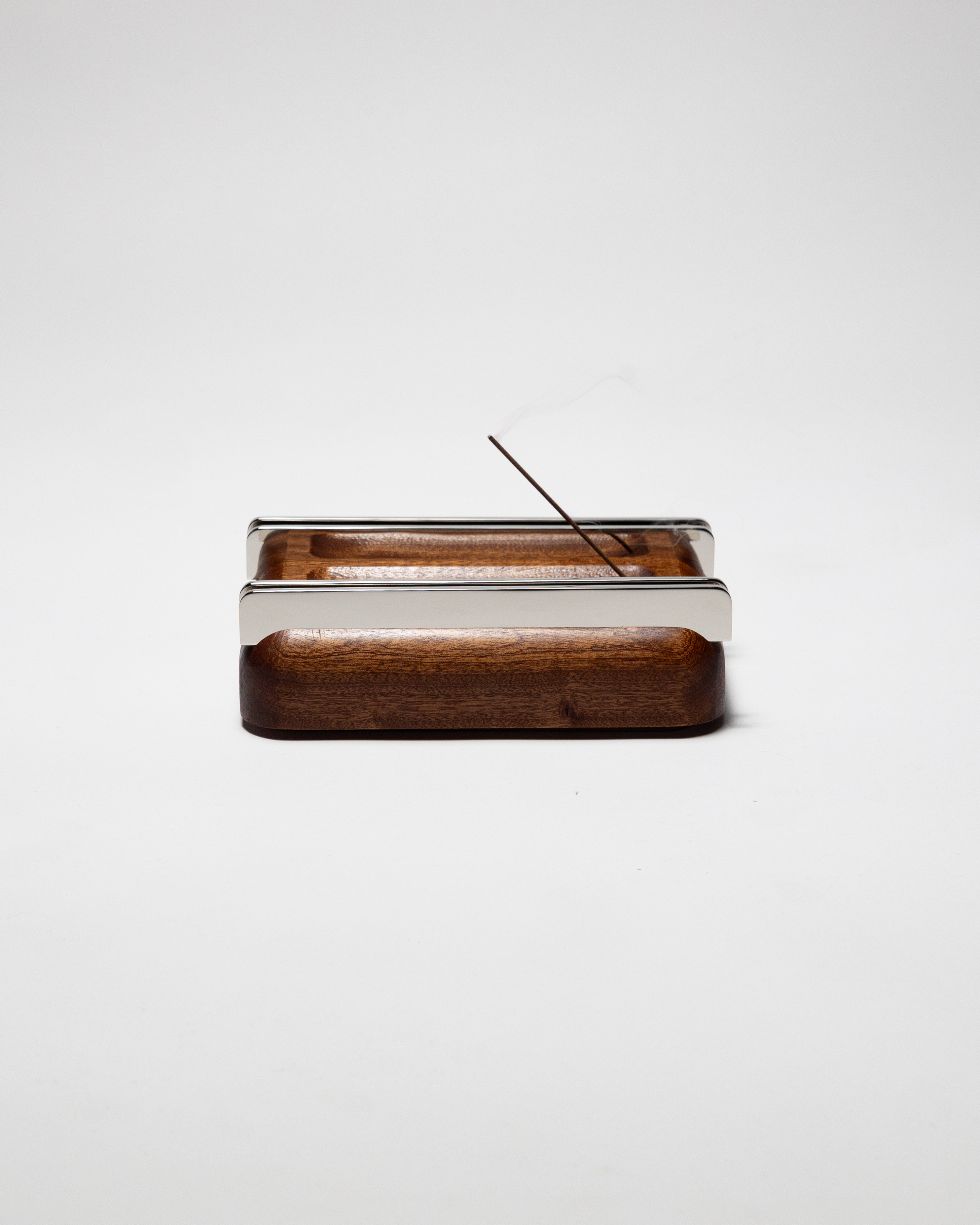 The Smoke Tray was designed with a cinematic sense of glamour - polished, intentional, and indulgent. Crafted from shaped mahogany and topped with solid chrome-plated brass rails, it evokes the mood of an old Hollywood lounge: intimate, refined, and enduring. The rails offer a refined resting place for whatever you like to smoke, blending function seamlessly with elegance. Created as an incense holder, ash tray, or catch-all for treasured clutter, its weight and materials give it the presence of a small piece of furniture or a jewelry box. It reflects the spirit of Astraeus Clarke’s upcoming furniture collection, where rich woods, polished metal, and precise craftsmanship come together to elevate even the most ordinary rituals.