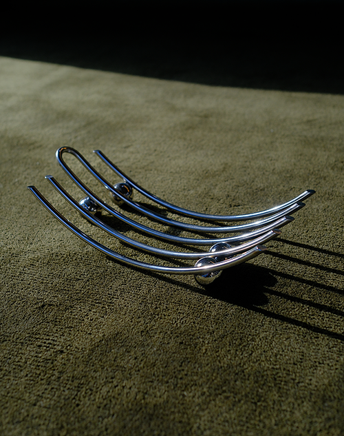 ASTRAEUS CLARKE — Smoke Tray and Silhouette Vase; Incense Holder/Catchall Tray, Chrome and Brass Vases.