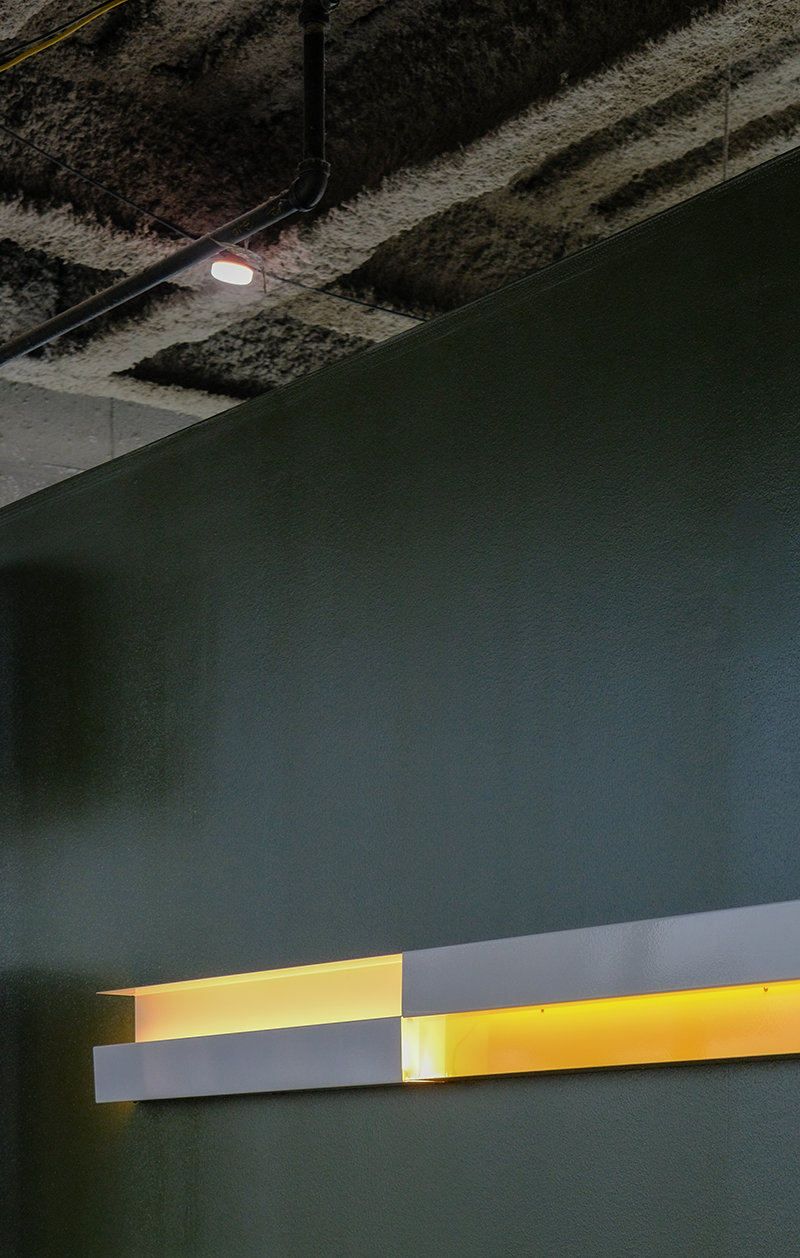Green Room No. 1 is composed of the following works by the following designers/artists: ANANAS ANANAS — Chisme; Interactive Wall Sculpture, Dos Puntos, Tabletop Metalware Collection.